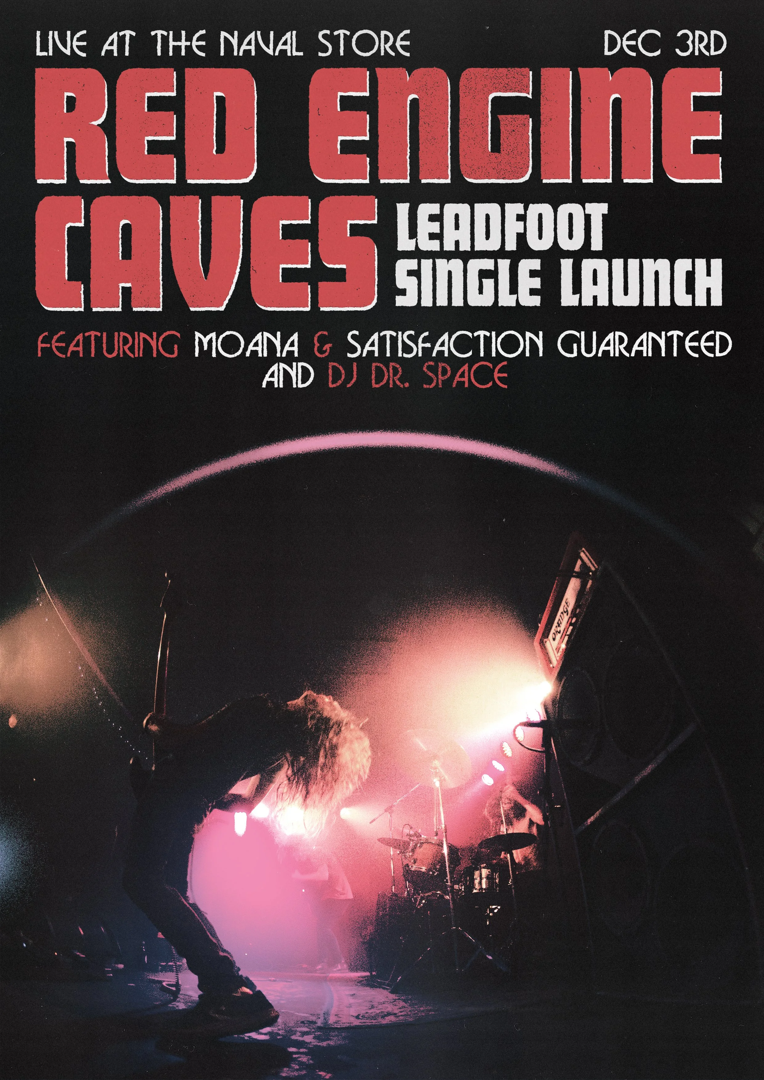 Red Engine Caves take over iconic warehouse space The Naval Store in Walyalup, Fremantle, for the launch party for their single ‘Leadfoot’.